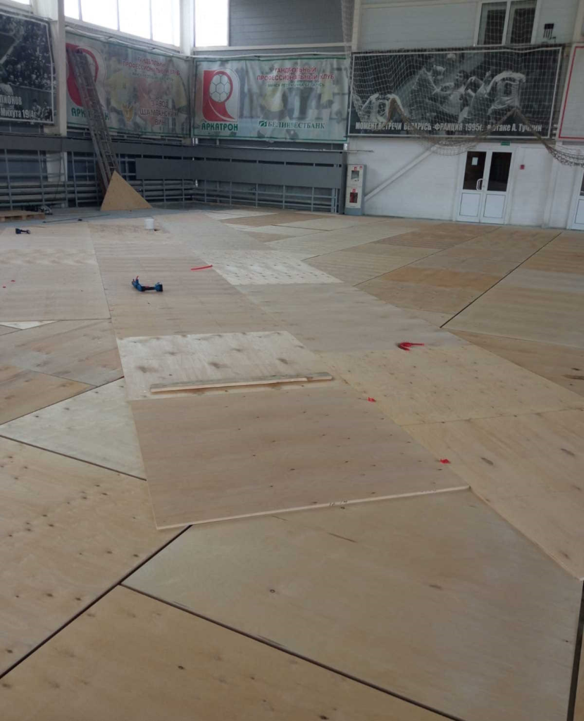 Ранее мы уже делились с вами тем, что ООО «ДСК Агро» осуществило на данный объект поставку подосновы системы спортивного паркетного амортизационного пола «АренаСпортПрофи» (производство ООО «РУСЛЕС»). Напомним, система является универсальной и в нашем случае реализована с применением финишного рулонного ПВХ-покрытия.