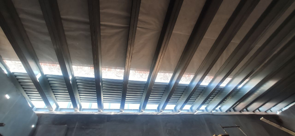 Для устройства каркасов несущих конструкций перекрытия и парапетов была применена технология легких стальных тонкостенных конструкций (ЛСТК). Наша компания не только разработала раздел КМД, но и осуществила поставку всех необходимых материалов и обеспечила шеф-монтаж.